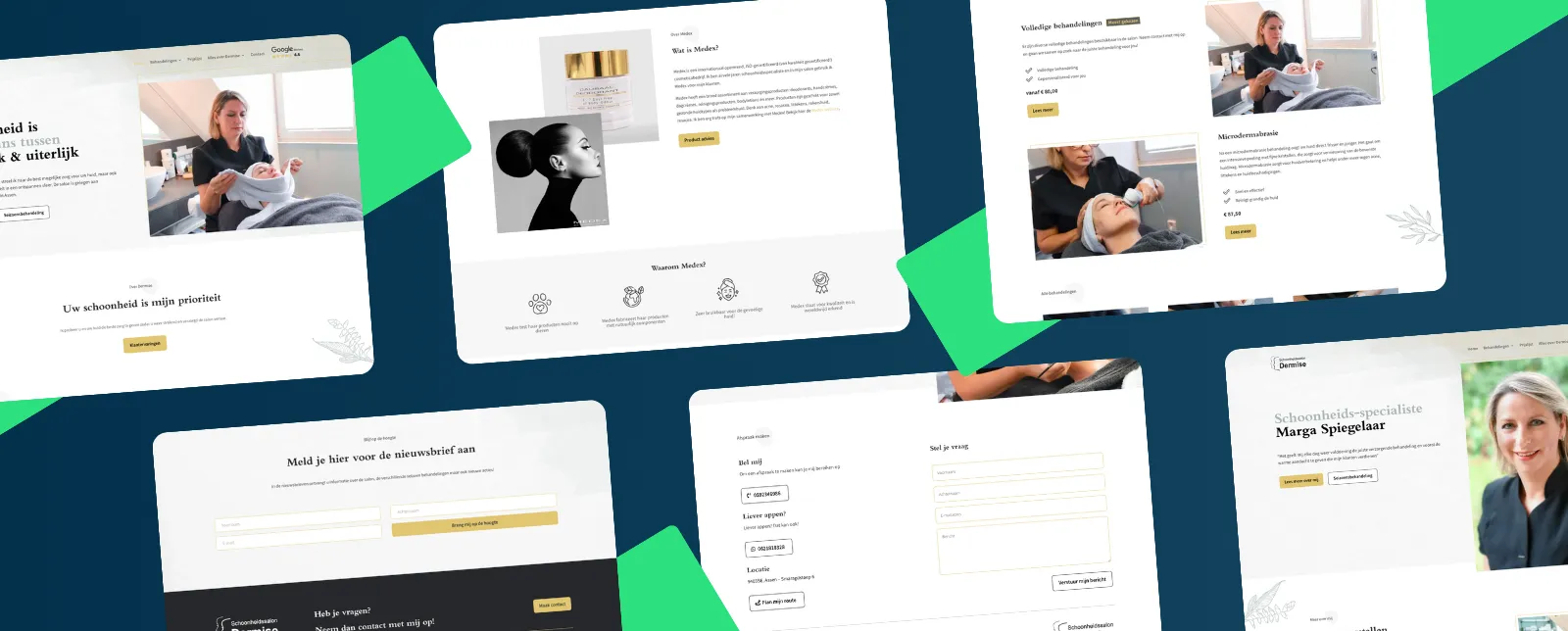 De salon had een website nodig die de uitstraling duidelijk weergeeft. Deze moest rustig en gemakkelijk te navigeren zijn, zodat ook de oudere doelgroep eenvoudig afspraken kon maken. Daarnaast moest de website een persoonlijk tintje krijgen, passend bij de nauwe samenwerking met het merk Medex. Ook was online marketing essentieel, zodat nieuwe aanbiedingen, zoals een zomerbehandeling, effectief gecommuniceerd konden worden aan de huidige klanten via een nieuwsbrief per e-mail.